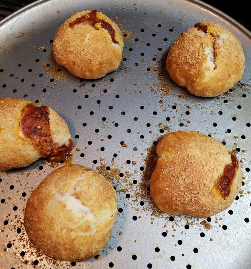 Bake 12-15 minutes until the bombs are golden brown on top. Some of the sauce may seep out of the dough as it bakes.