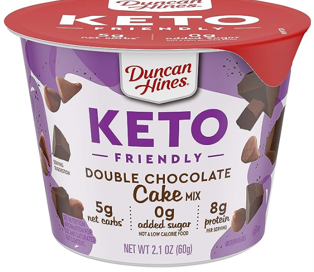 Duncan Hines, Birch Benders, Blue Diamond and King Arthur Flour all make individual portions of Keto cakes, brownies, cookies and muffins that are microwavable. This is a fabulous idea for a single-serving snack. They taste great, too. Most grocery stores carry all or some of these products nowadays. Sometimes Kroger will clear them out for .99 cents up to $1.25; otherwise,, they cost around $3.99. At that price, you could almost buy a whole box of Keto cake mix. Almost.