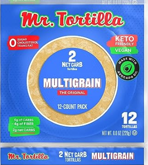 These tortillas are mail order only. The tortillas are on the small side, but they hold together well, which is a big difference from other low-carb or Keto tortillas. Because it is a mail order, you have to buy a box of them, but you can freeze these and thaw them when needed. Mr. Tortilla has a line of Keto-friendly products, all of which I have not tried yet. I have tried the Keto tortilla chips and they are quite good. I like them for taco soup or salad or snacking. Delicious!