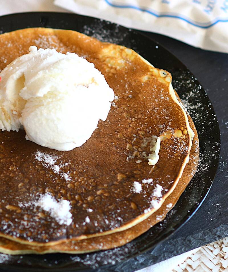- Serve the pancakes hot with a dollop of the cinnamon butter on top.