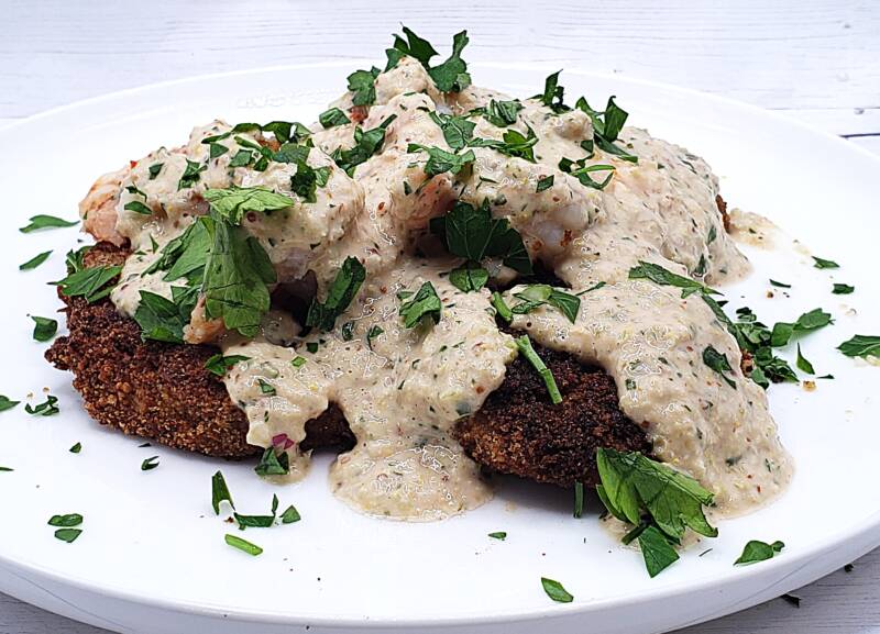 Low-Carb Shrimp Remoulade over Fried Eggplant