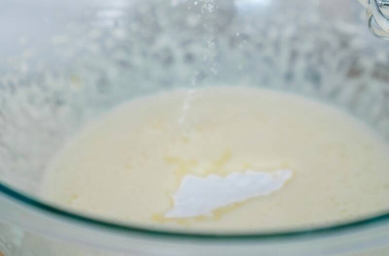 - In the bowl of a mixer, combine the Swerve granular, melted butter, vanilla, lemon zest and eggs.
