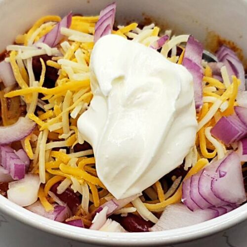 Top with cheese, avocado, chopped cilantro, sour cream, red onion or a squeeze of lime.