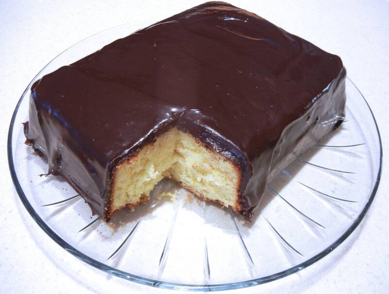 - Poke holes in the cake with the end of a wooden spoon.