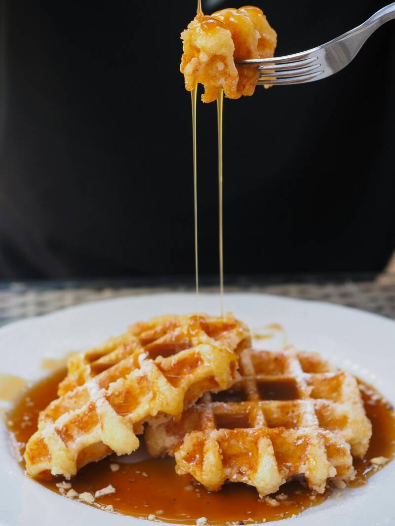 Enjoy your crispy, fluffy waffles and syrup!