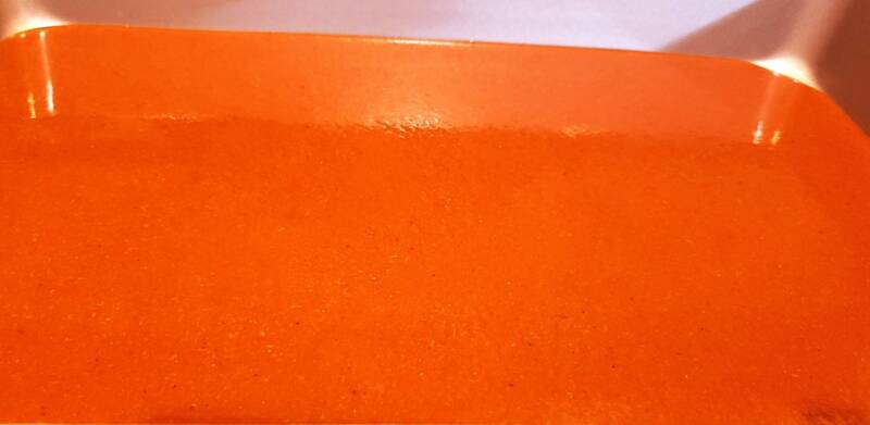 • Pour a bit of the sauce into the bottom of a 9×12″ baking dish, completely covering the bottom.