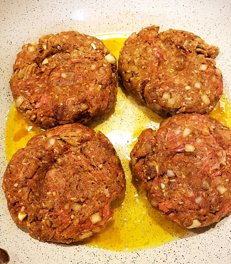 Fry the burgers until the desired doneness.