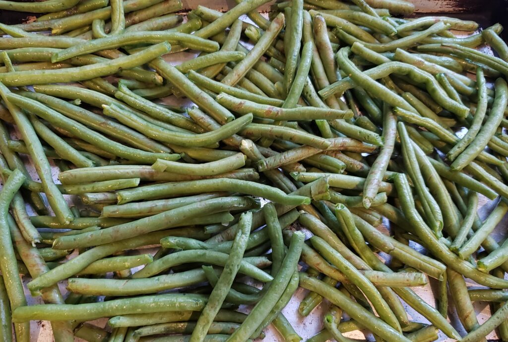 Trim green beans – Fish with Olive Salsa