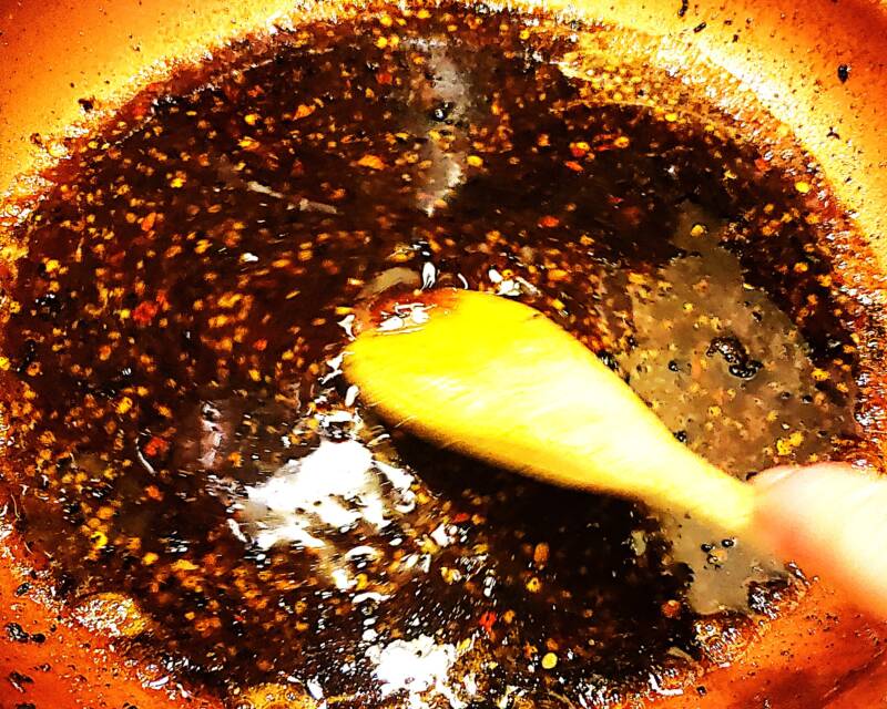 - Add the beef bouillon, balsamic vinegar and red wine.