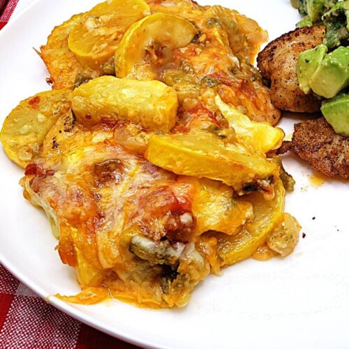 Keyword Blackened Salmon with Keto White Cheddar Grits, Keto Side Dishes, Low carb side dish, Low-Carb Appetizer, Mexican Side Dish, Mexican Side Dish REcipe, Side dish recipe, Tex Mex Yellow Squash, Yellow Squash, Yellow Squash Recipe