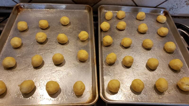 - Remove the dough from the refrigerator, roll about a teaspoonful into balls and place on an ungreased baking sheet about 2"apart. Flatten the balls with the bottom of a glass that has been dusted inSwerve granular.