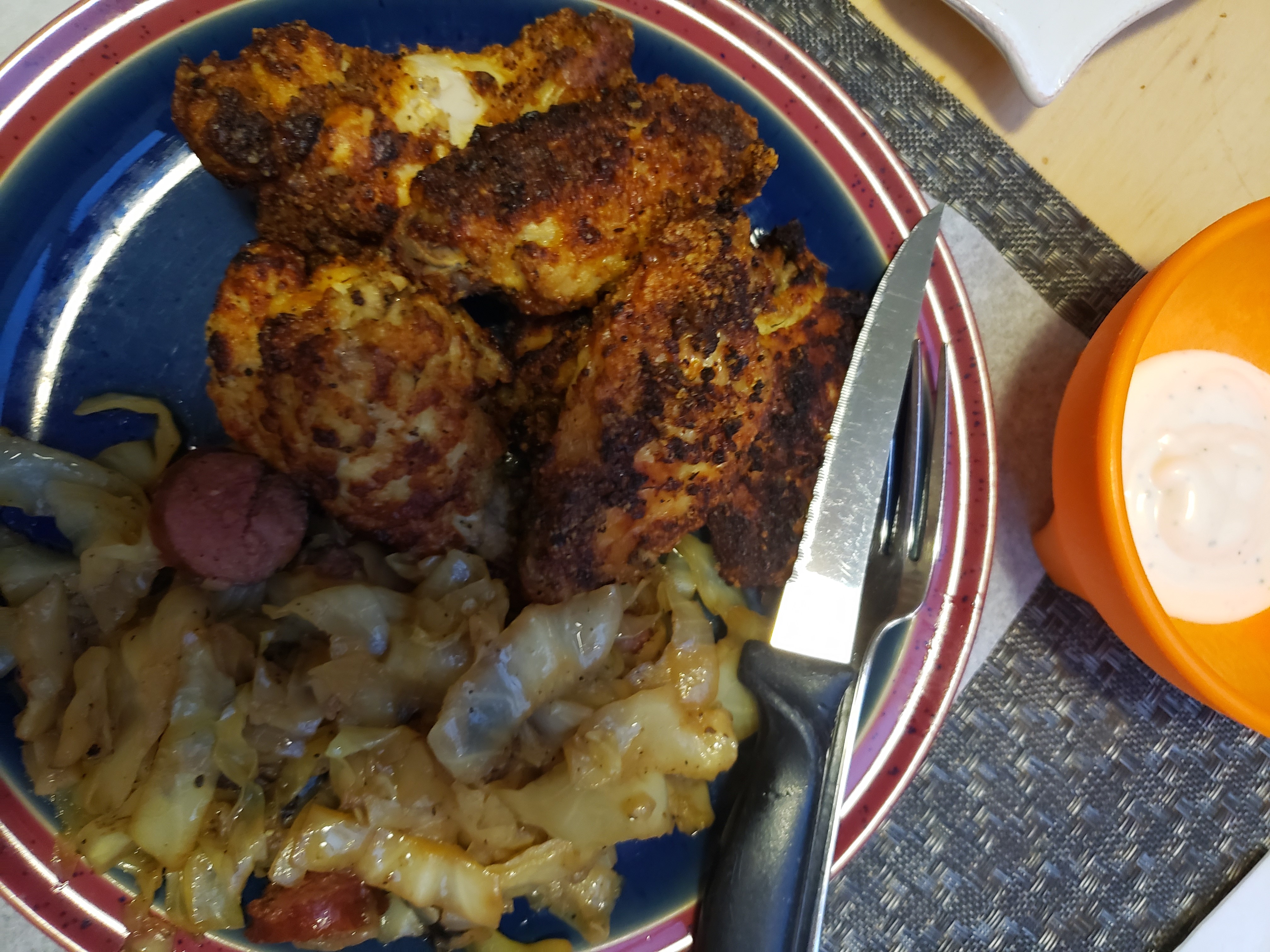 The result is crispy, delicious wings! I served these with some sauteed cabbage on the side.