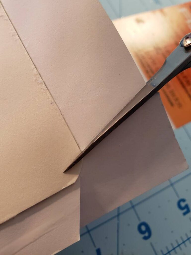 Open the front cover of the notebook and line up your scissors to cut a diagonal slit in the paper overhang to line up with the edge of the rounded corner of the notebook. Repeat with the other corners.