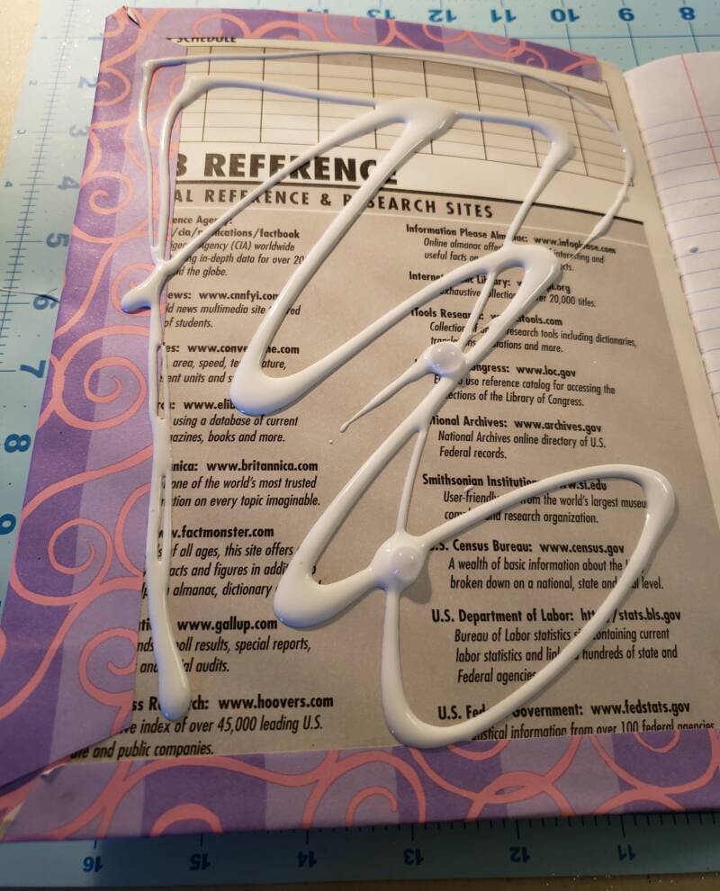 Repeat the above steps for the back cover. When completed, the outside of your notebook should look like the example below.