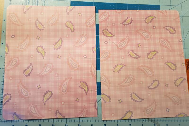 Two sheets of 12 x 12 scrapbook paper of the same pattern for the inside front and back cover