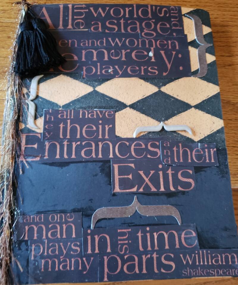 Embellish with ribbon, stickers, tassels, fringe, stamps, ephemera, etc., on the front of the notebook. Following are some embellished examples of the notebooks I have made.