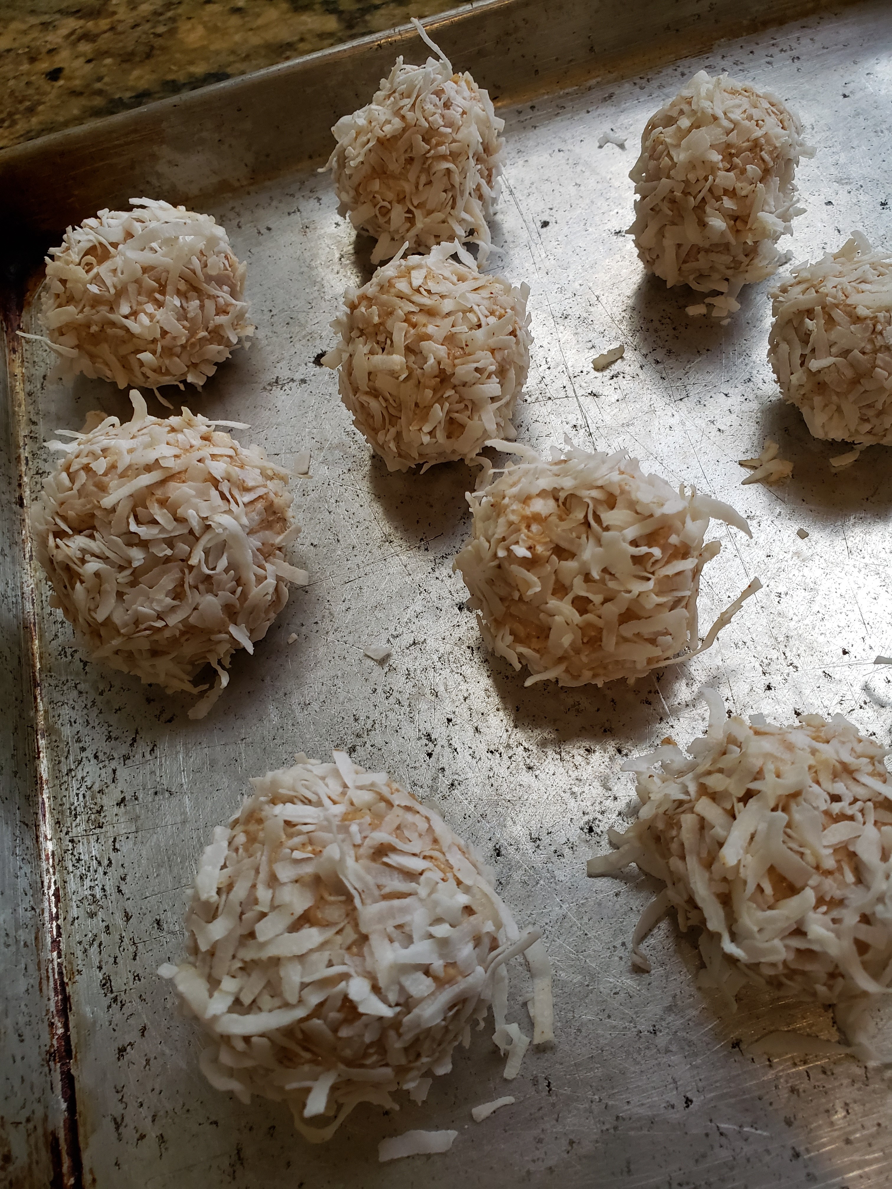 Remove the cream cheese mixture from the refrigerator and form it into balls. Roll in the coconut and place it on a cookie sheet. Flash freeze in the freezer until hard. Remove from the freezer and place in a plastic storage bag or container. Freezing the fat bombs before placing them in a storage bag keeps them from sticking together. You can store it in the freezer or in the refrigerator. These will not last very long because they will get eaten quickly, so there is no concern about how long they will keep in the refrigerator or freezer. Enjoy!