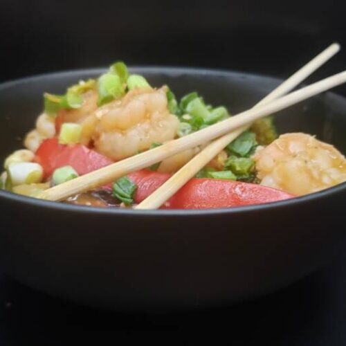 In this version, juicy shrimp take center stage, tossed with crisp-tender vegetables and a savory, aromatic sauce. Serve it over cauliflower rice or resistant-starch rice for a satisfying meal that everyone will love..