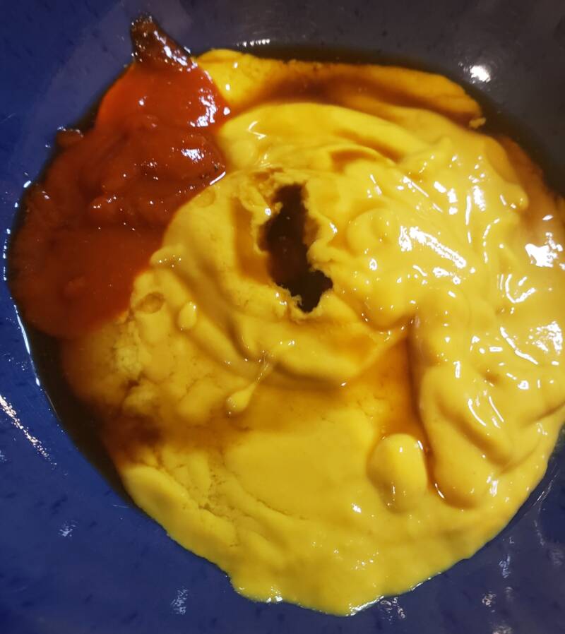 - In another small bowl, mix together the spicy ketchup sauce ingredients. Set aside.