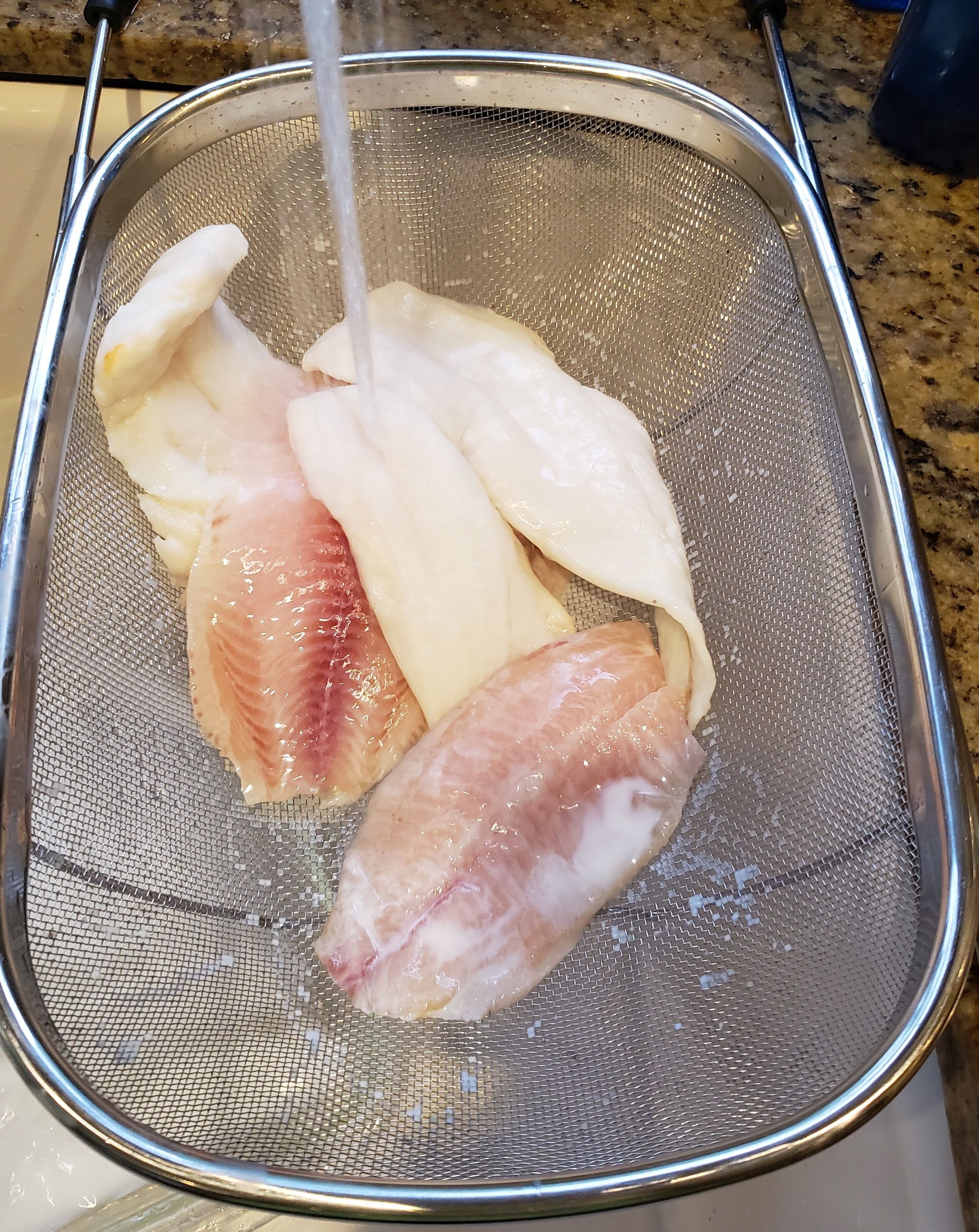 After the fish has soaked, rinse thoroughly in a strainer.