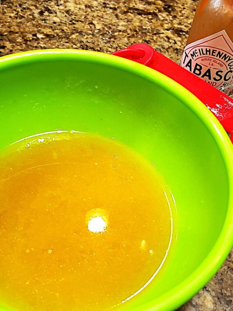 - Mix the melted hot sauce, butter and lemon in another bowl.
