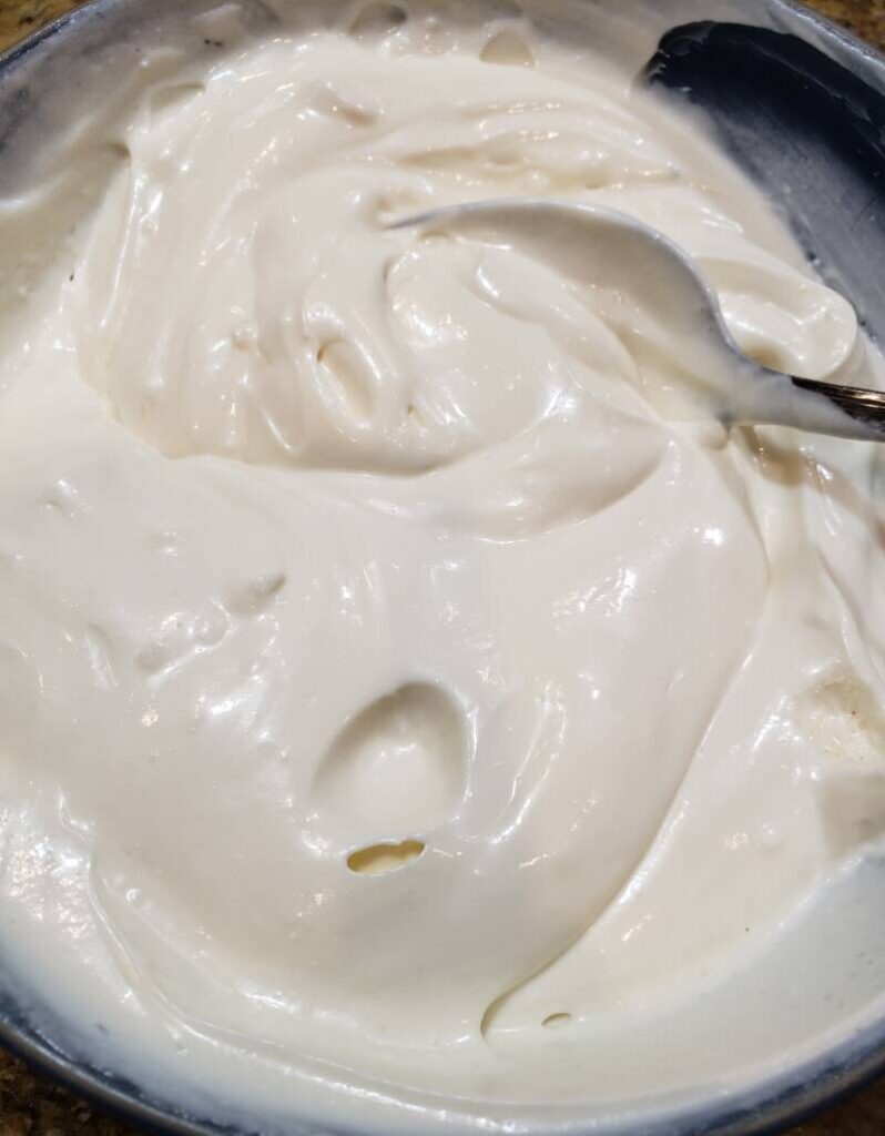 - In a small bowl, combine the mayonnaise, red wine vinegar, granular Swerve, onion powder, salt and pepper.
