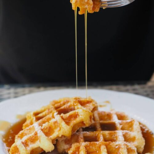 Enjoy your crispy, fluffy waffles and syrup!