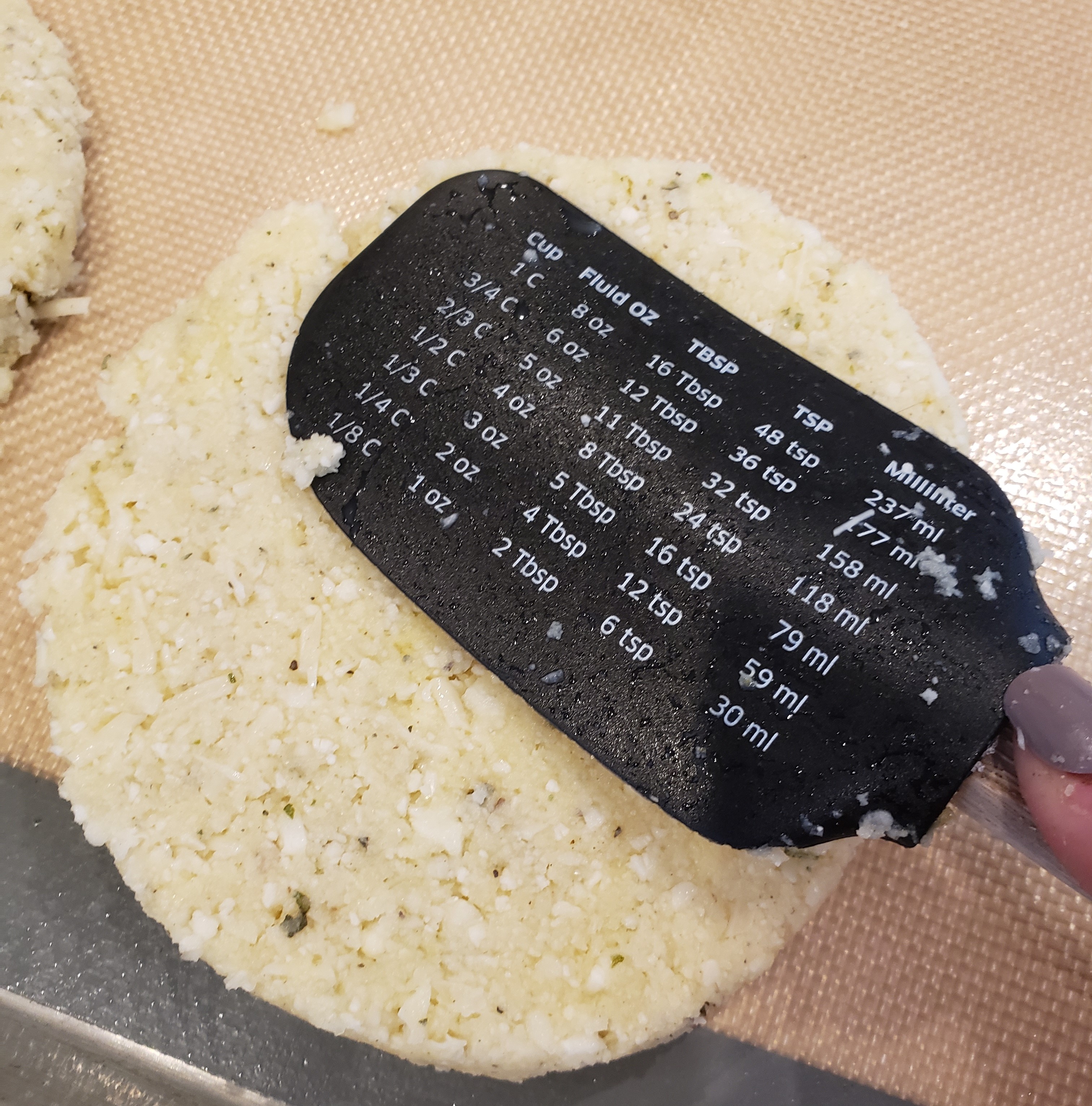The things that go through my mind sometimes as alternatives for foods I took for granted before Keto! Cauliflower patties are one idea that I had to replace English muffins. OK…..so they didn’t turn out anything like English muffins, but they are good nonetheless. These could replace polenta as a side dish or as a foundation in recipes that use polenta. I think this experiment was a good one even though it did not turn out as originally intended.