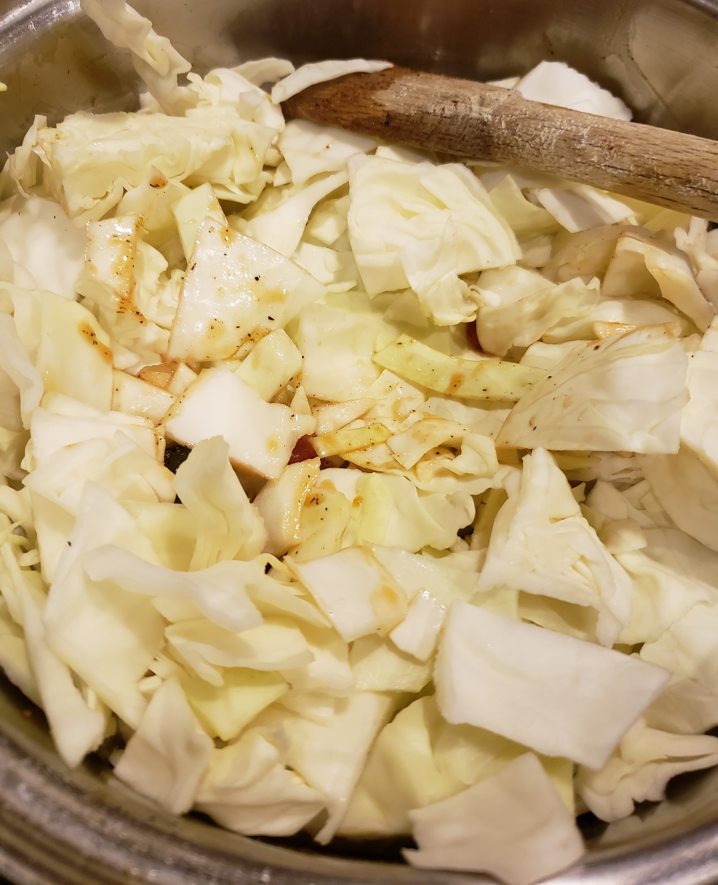 Add the cabbage and stir to coat. Place a lid on the pot for 10 minutes.