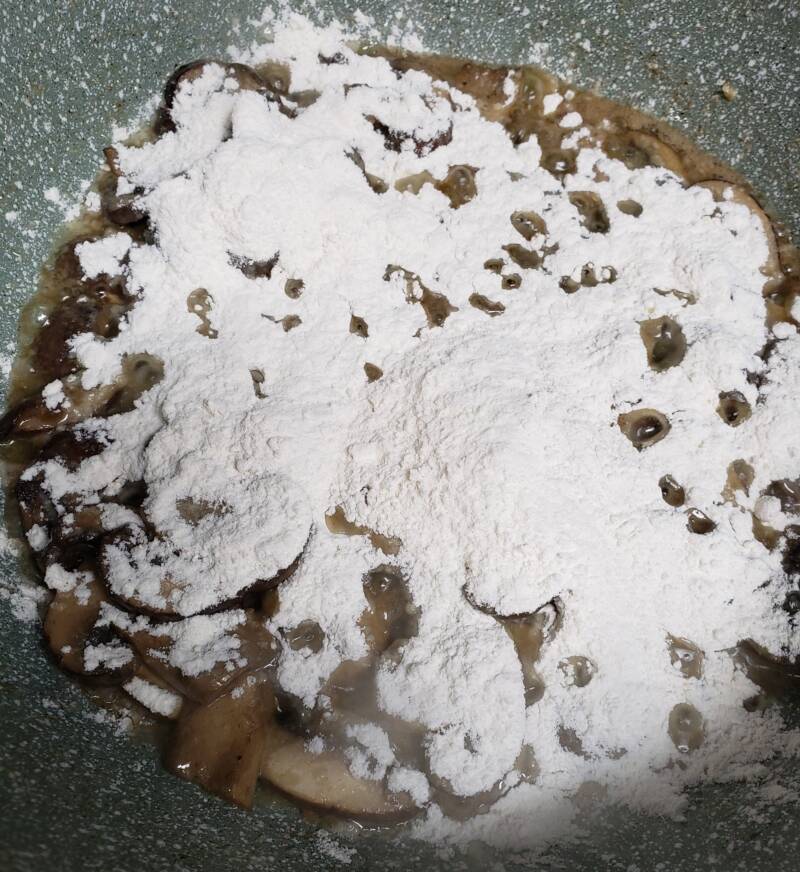 - Sprinkle the Carbquik over the vegetables. Stir until a roux forms.