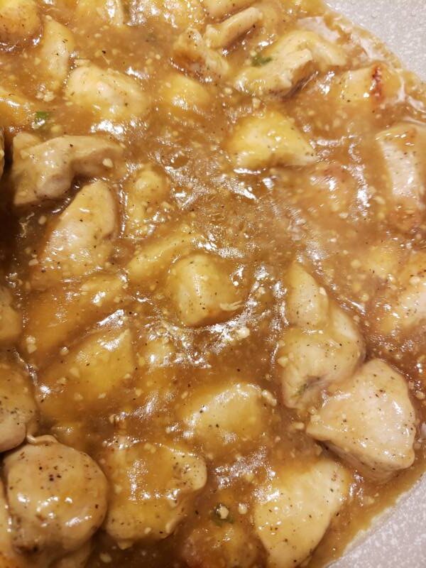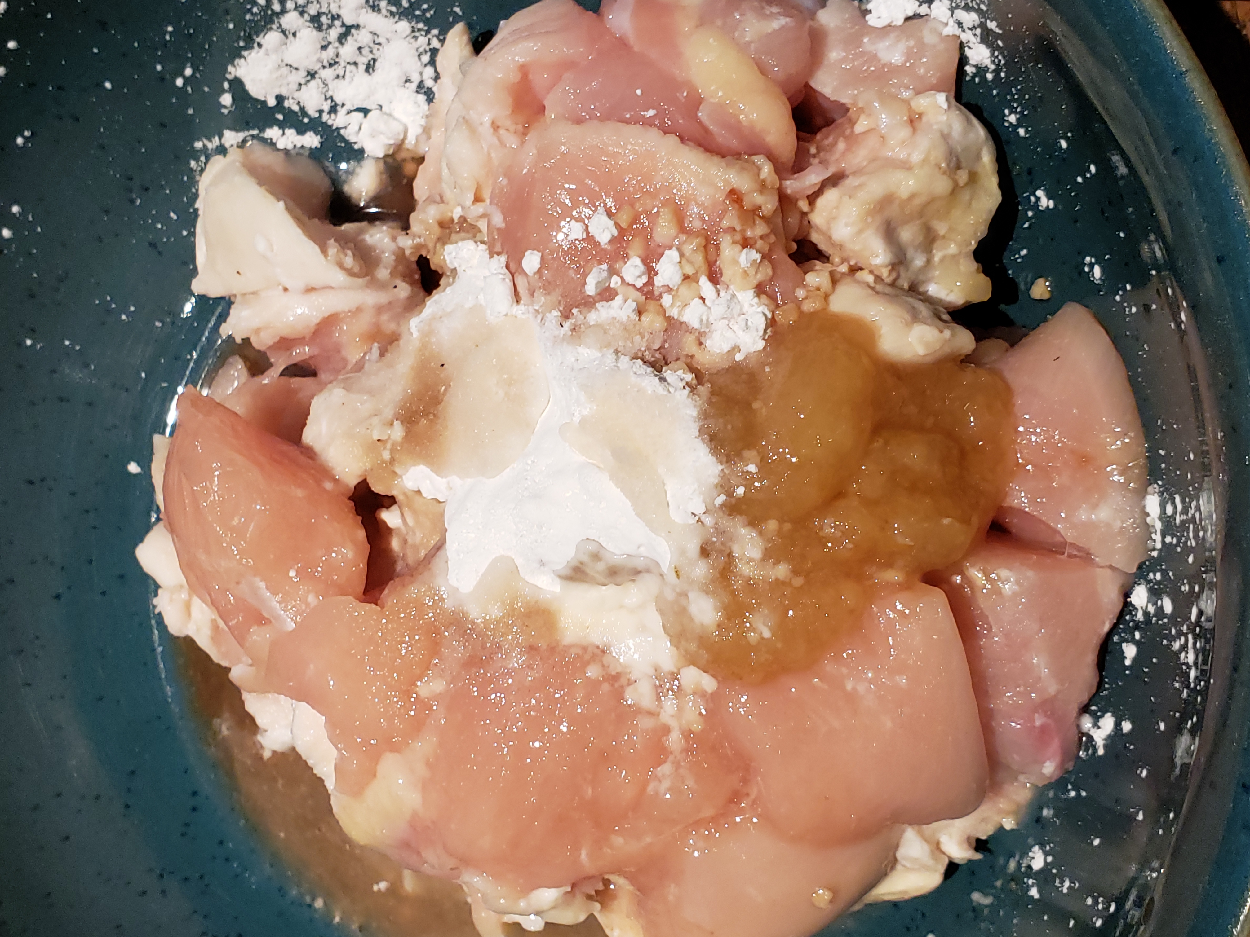 Add the chicken until browned on most sides. Add some more ginger paste if you like ginger and a tablespoon of cornstarch. Pour in the sauce mixture. Stir until the sauce thickens.