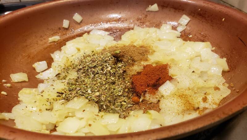 - Add spices and stir to mix. Cook for 2 to 3 minutes.