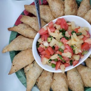 - Serve the empanadas with the pineapple salsa with the Chicken Empanadas.