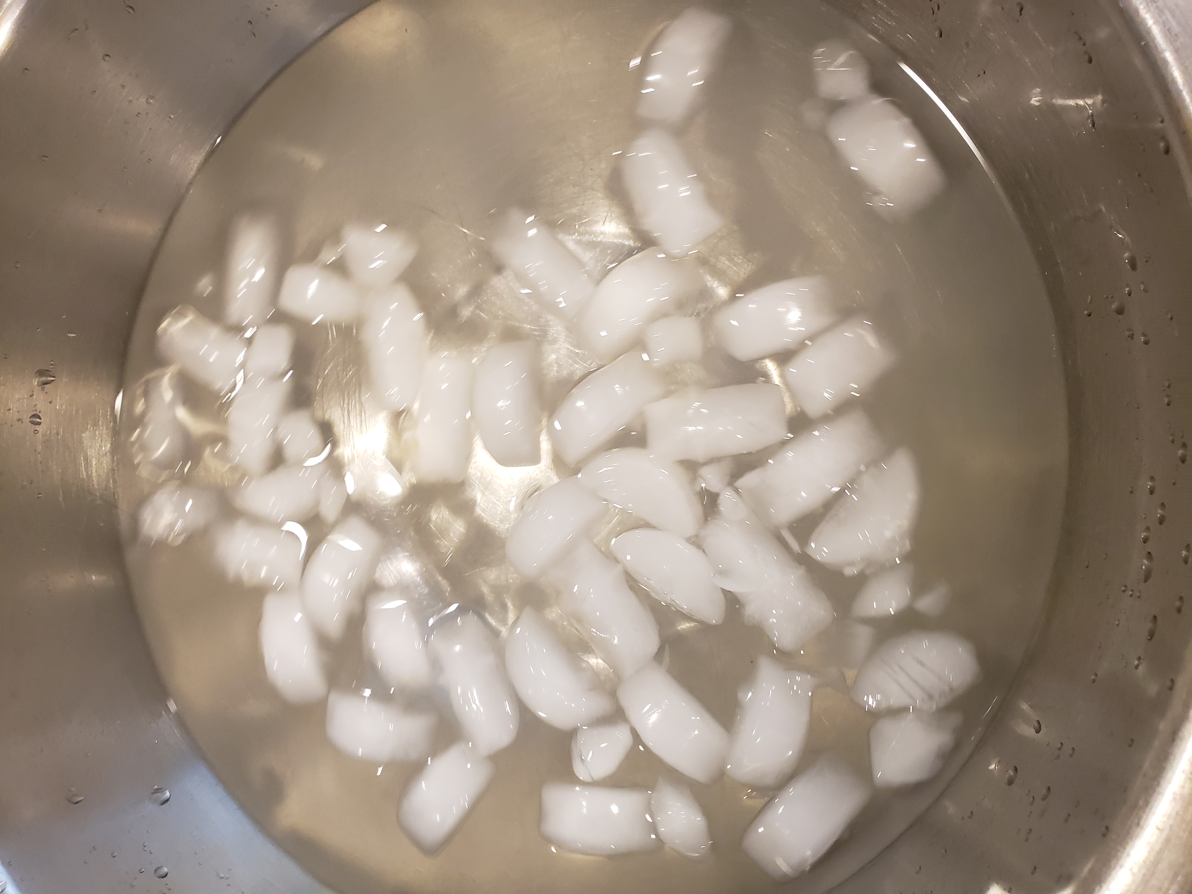 While the citrus water is coming to temperature, prepare a bowl of ice water and set it aside.