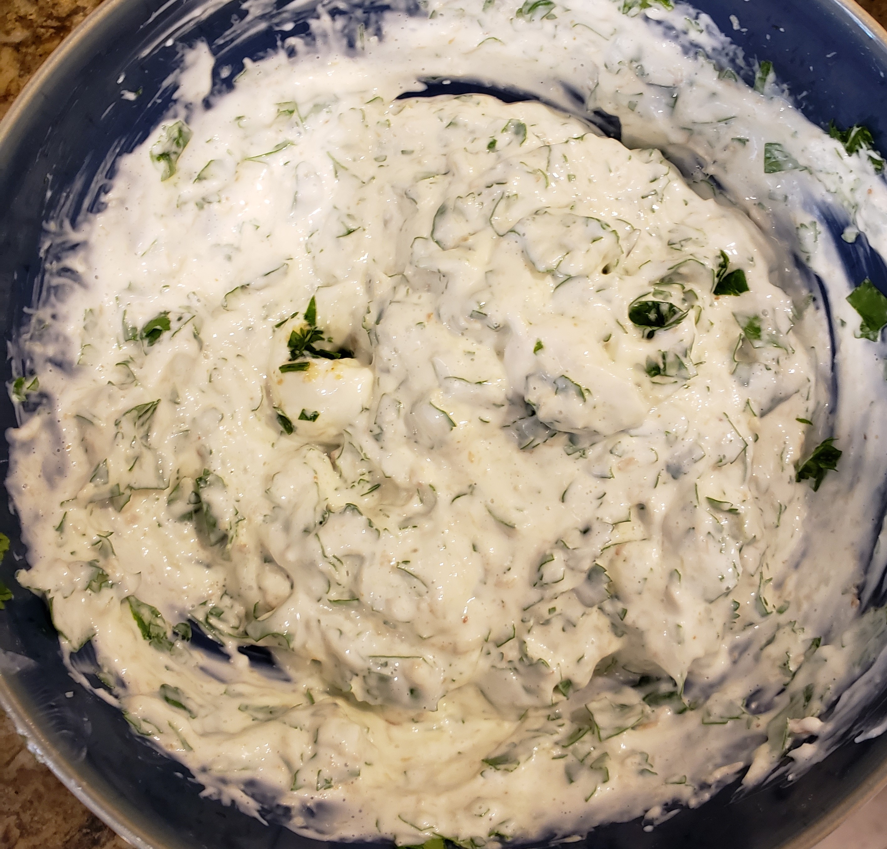 - In a small bowl, mix the mayonnaise, horseradish and dried basil. Set aside.
