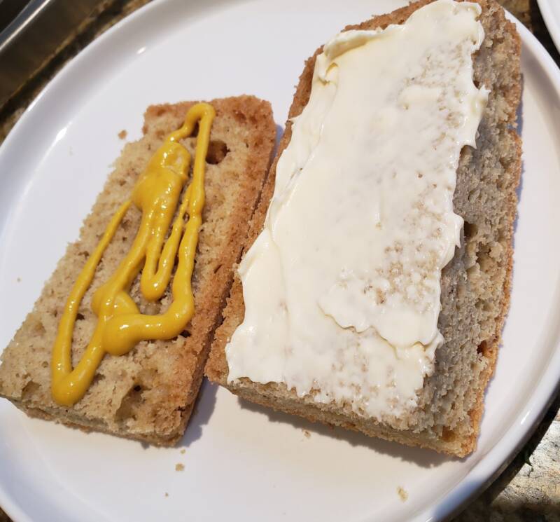 - If you are using sliced bread, you can toast the bread to make it a little more sturdy. In hindsight, I should have done this because the bread mix I wanted to use baked up more like cornbread. It was good bread on its own, but not good for sandwich bread. The picture on the box was misleading as it showed a loaf of artisan-type loaf that I thought I could slice, which was not the case at all. I think sliced bread would work much better.