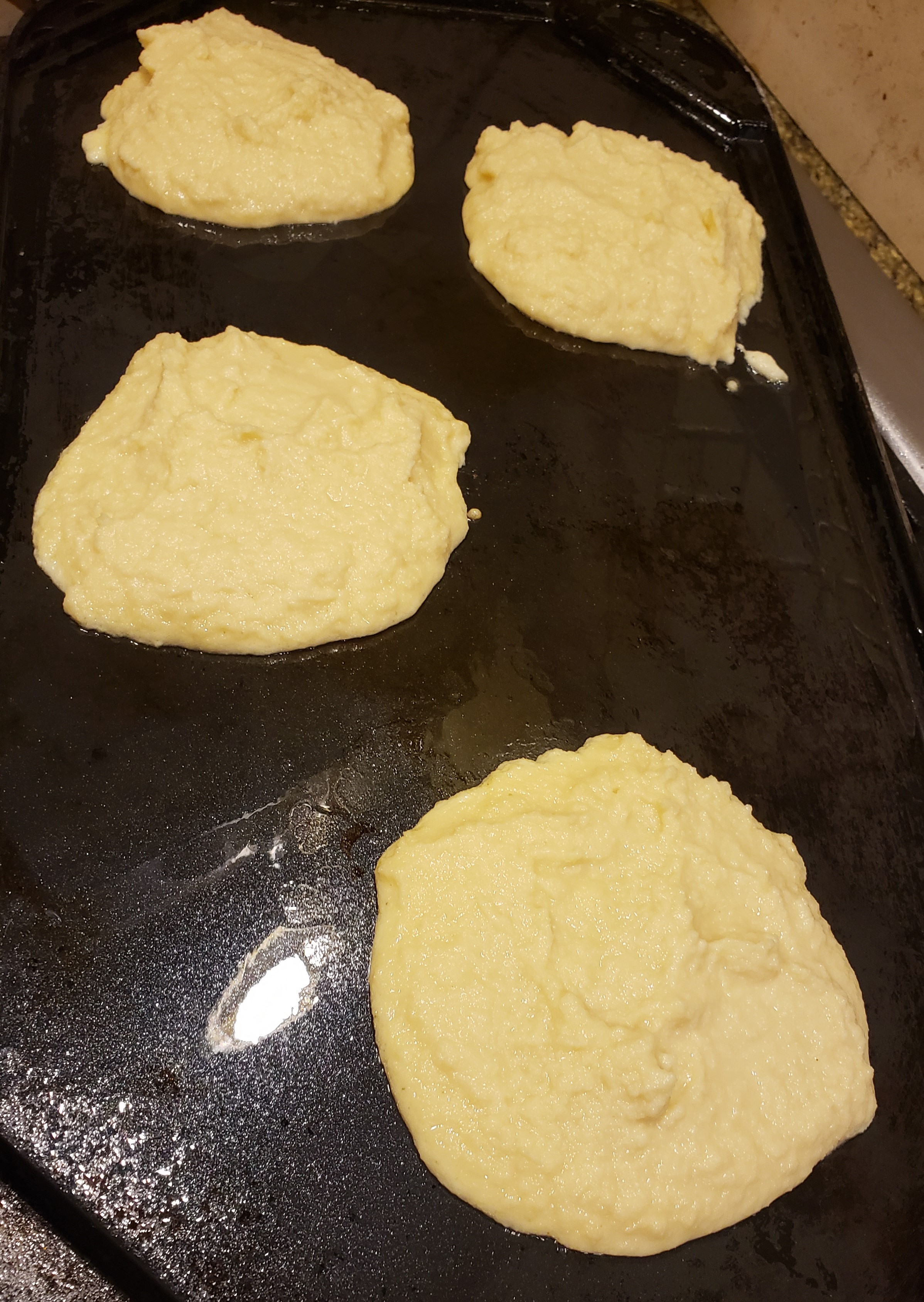 Remove the pancakes from the griddle and top with a pat of butter and other favorite toppings.