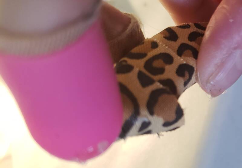 Starting at one of the hanger’s bottom corners, place a dab of hot glue on the plastic to adhere the end of a strip of fabric.