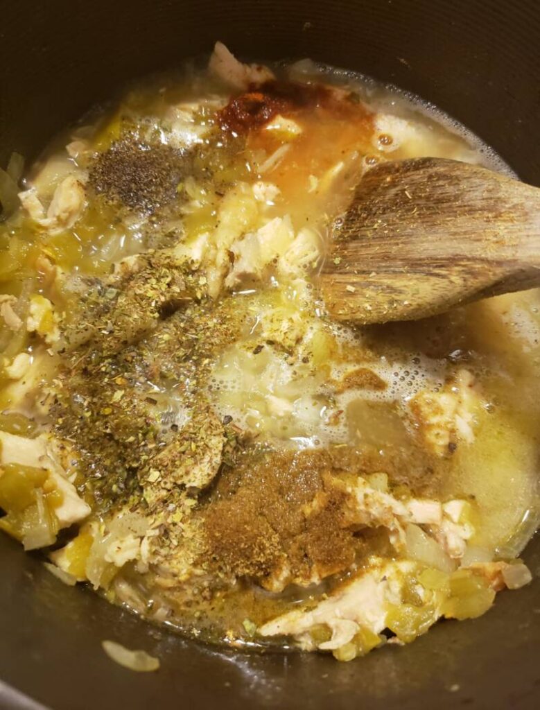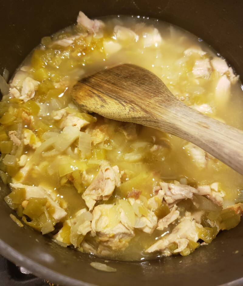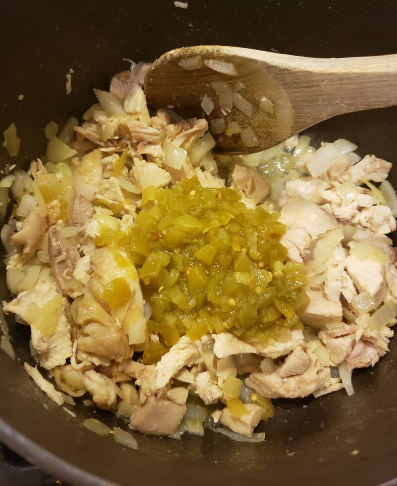 Add the chopped green chiles to the chicken and stir to combine.