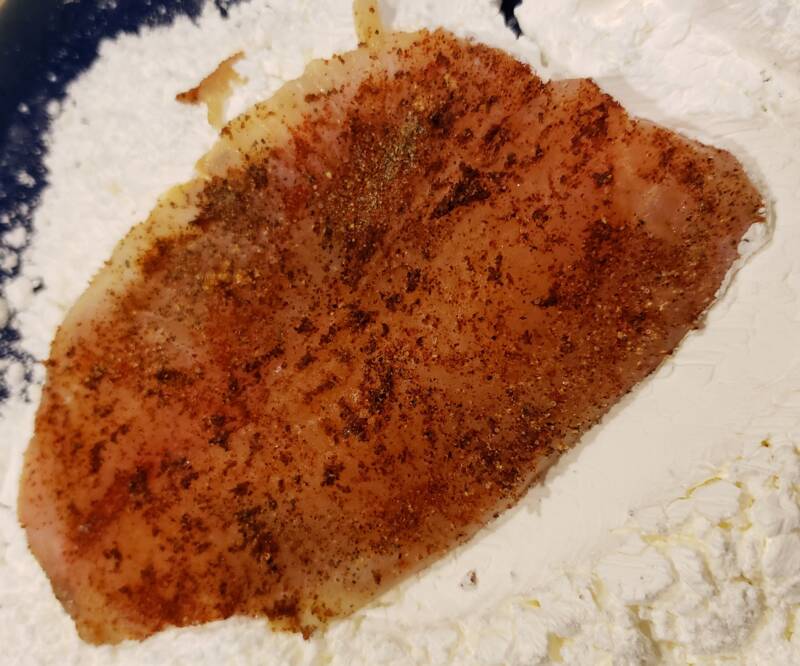 - Dredge the fish in the baking mix until coated.