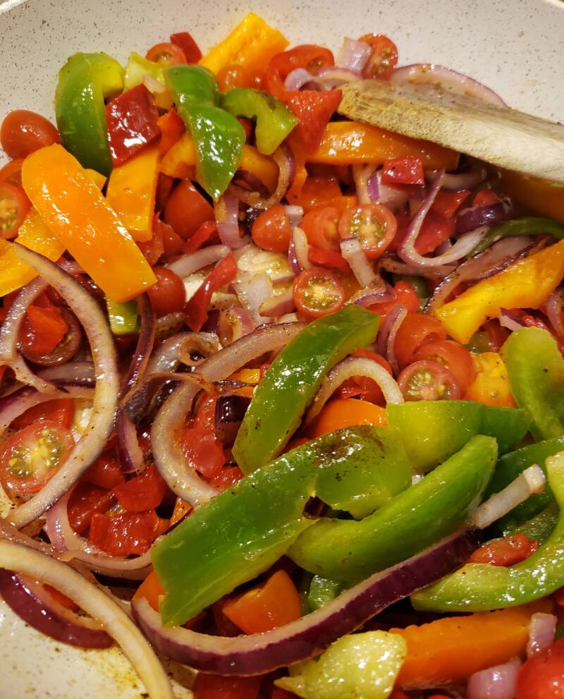 - 3 peppers of different colors sliced
