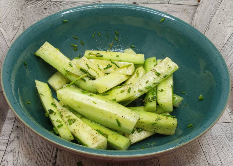 - Sprinkle the cucumbers with chopped fresh herbs.
