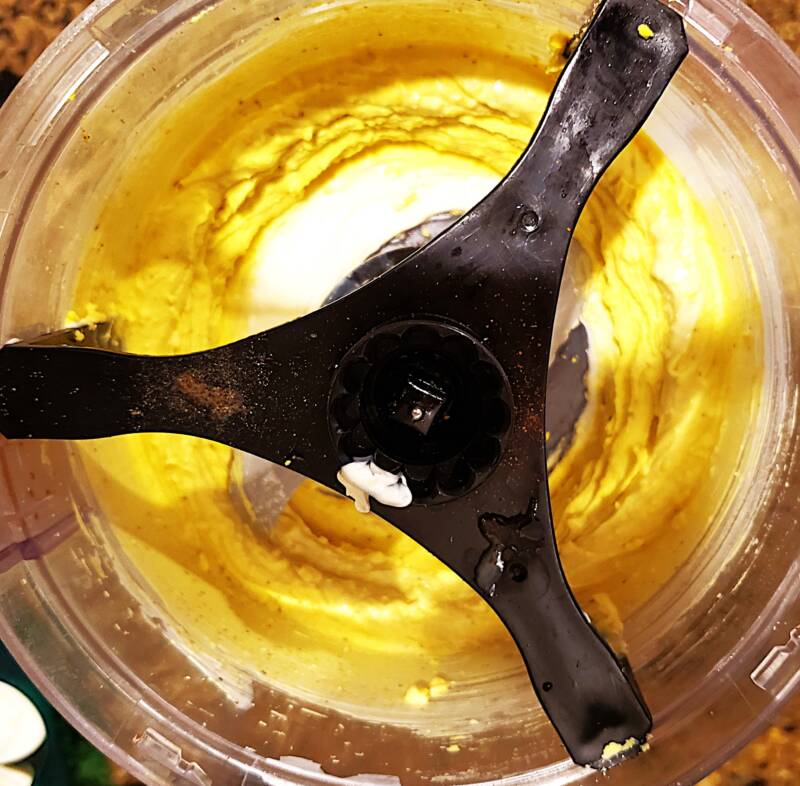 Place the white part of the eggs in an egg tray. Place the egg yolks in the bowl of a food processor and blend until they resemble fine crumbles. Alternatively, mash with a fork or potato masher into fine crumbles. Place the yolks in a bowl. Add mayonnaise, mustard, salt and pepper.