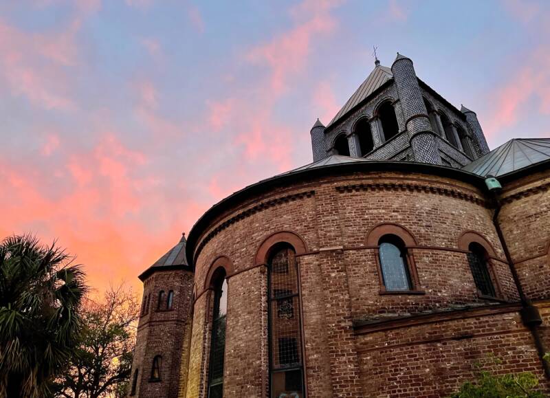 In 1861, a tremendous fire swept through Charleston decimating the city with the church being one of its victims. The Civil War started soon after causing more damage to this key city. The church was rebuilt by 1892 with bricks saved from the previous church structure that was destroyed in the fire, but by that time, the congregation had diminished significantly. The circular design of the current structure is reminiscent of the circular design of the previous church and derives more meaning as a symbol of universal eternity and wholeness. The interior of the church was last restored in 1987 and still withstands its invitation of acceptance to everyone.