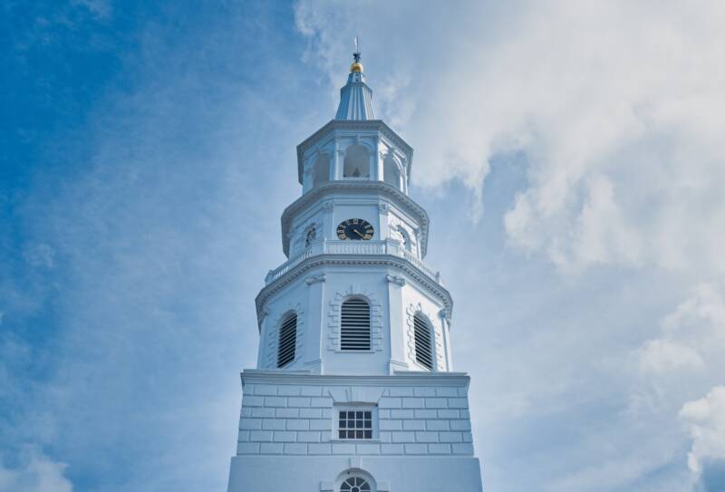 Stepping out of the Nathaniel Russell House, turn left on Meeting street. Walk up Meeting Street until you arrive at St. Michael’s Episcopal Church.