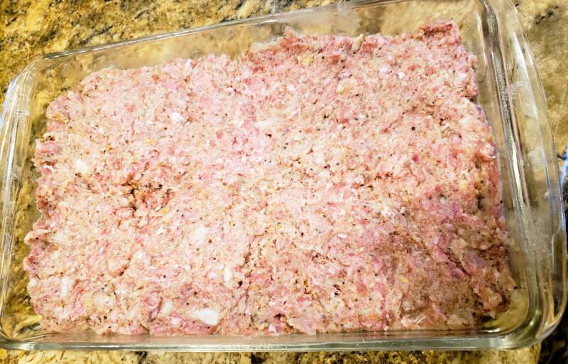 Press the meat mixture into a 9×12″ pan.