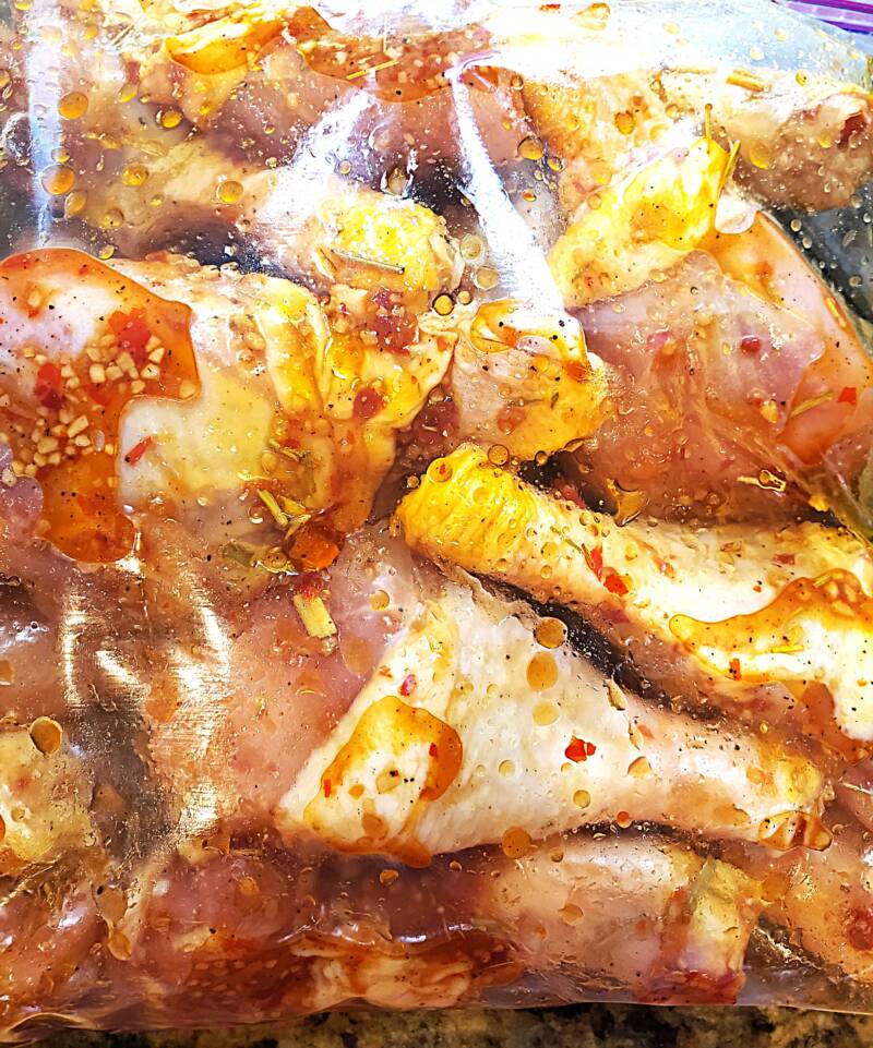- Place chicken in a resealable bag and pour the marinade over the top.