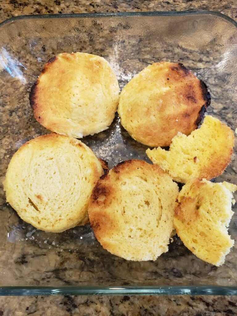 If you are Keto, you can make your own Keto English muffins in a mug. They are very easy to make and take only minutes. If you are not following a Keto diet, you can use your favorite brand of English muffins for this recipe. You will need 3 English muffins for this recipe.