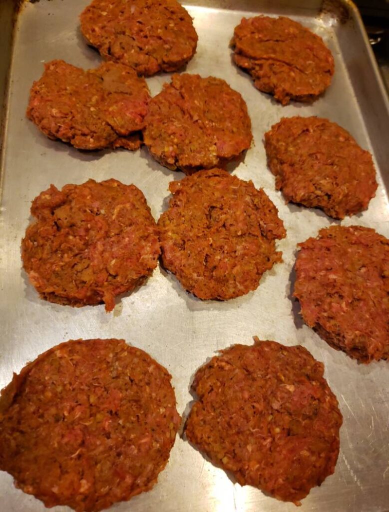 - Shape the beef mixture into 8 thin patties.