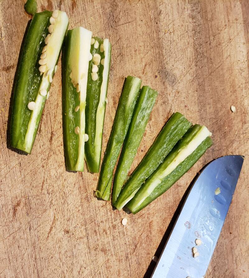 - Remove them from the oven and dice after they have cooled a little bit.